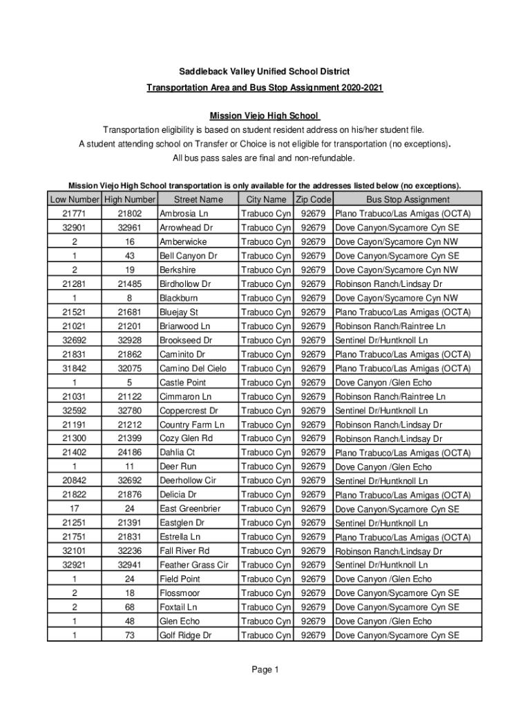 Fillable Online Bus Passes Transportation Saddleback Valley Unified
