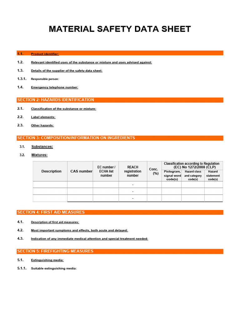 Here are some of the images for Safety Data Sheet Template that we found in our website database.