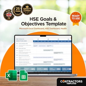 HSE Goals 2025 Dashboard: Excel Powerpoint Safety KPI Tracker (digital
