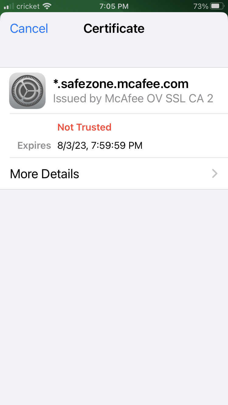 Mcafee safezone cert on an iphone? : r/sysadmin