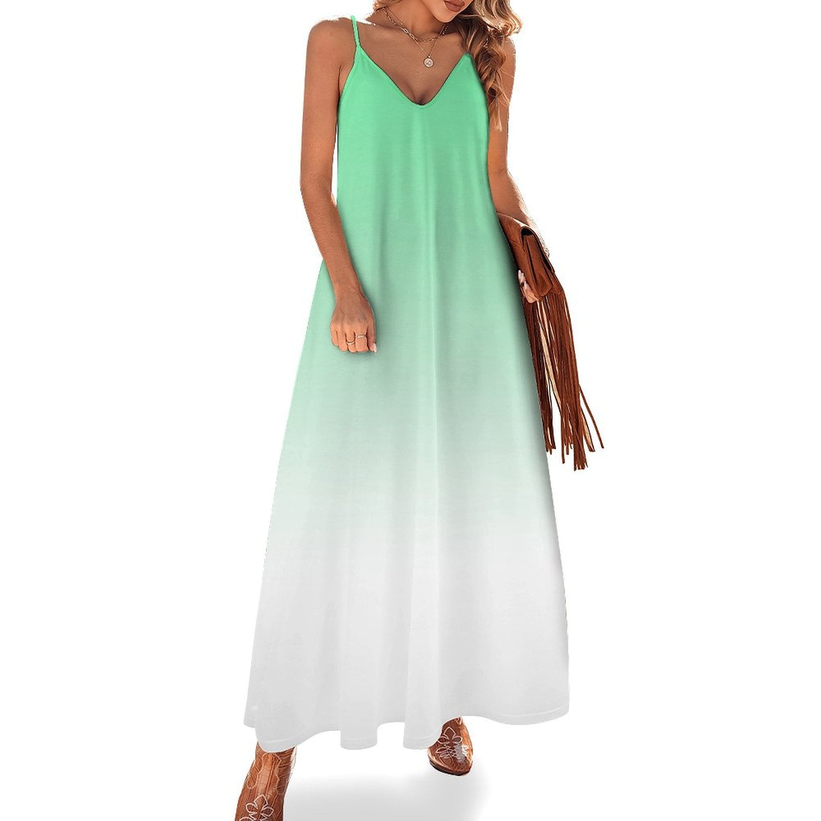 Aesthetic Sage Green And White Gradient Sleeveless Dress Dresses Women