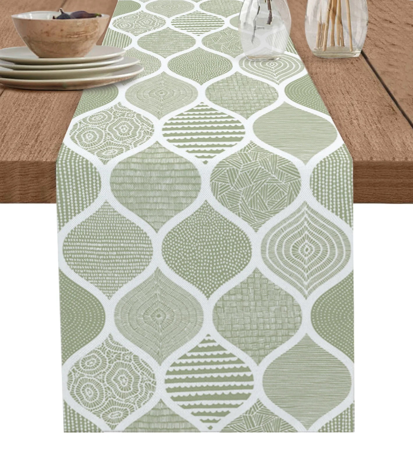 Geometry Moroccan Texture Sage Green Table Runner Cotton Linen Wedding