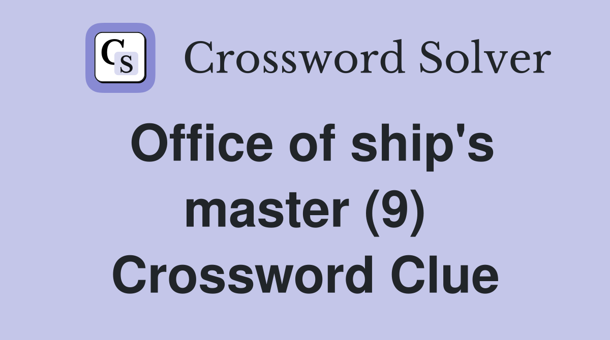 Office of ship #39 s master (9) Crossword Clue Answers Crossword Solver
