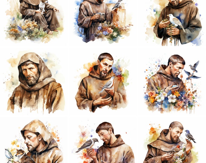 20 Saint Francis of Assisi Clipart Watercolor Clipart Saint Art