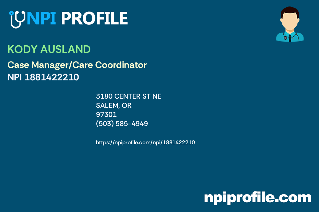 KODY AUSLAND NPI 1881422210 Case Manager/Care Coordinator in Salem OR