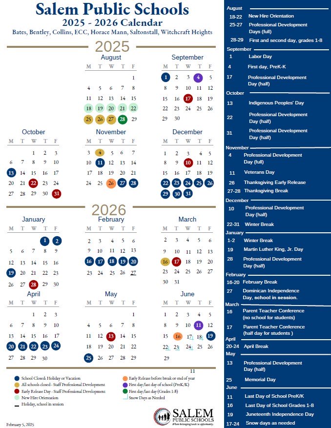 Salem Public Schools Calendar 25 26 Revised PDF EduCounty