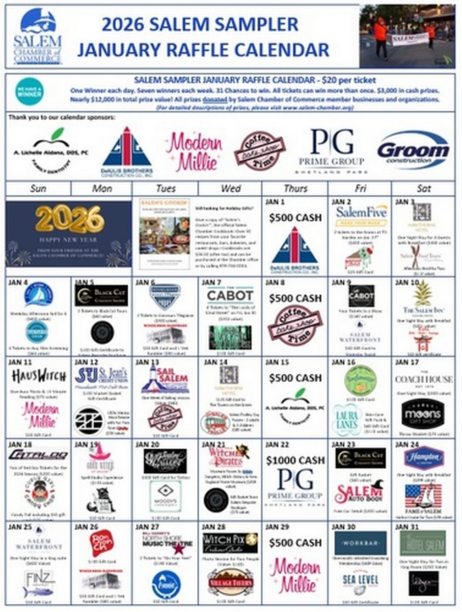 Salem Sampler January Calendar Raffle 2026 Dec 5 2025 Salem