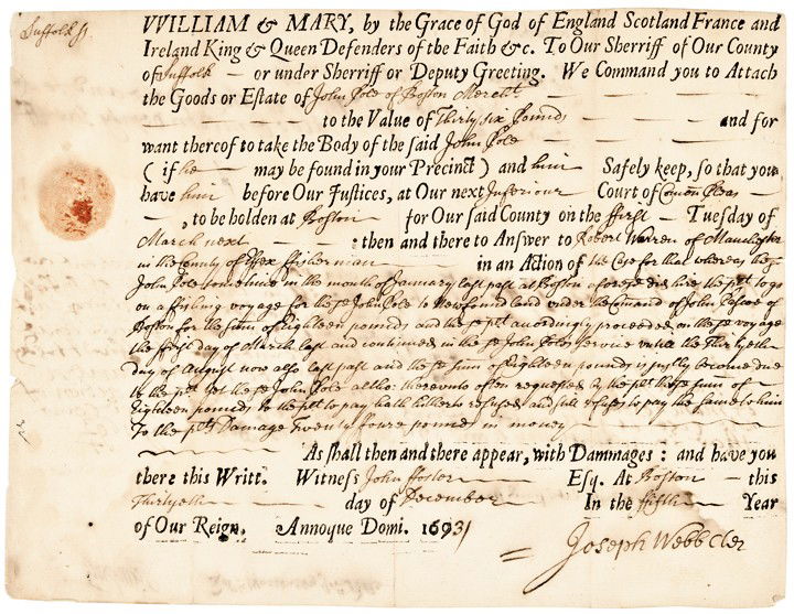 46: 1693 Legal Court Document Salem Witch Trials Mar 04 2012