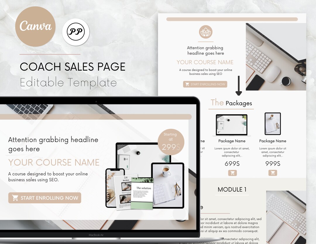Sales Page Template Coaching Website Design Canva Lead Magnet Editable