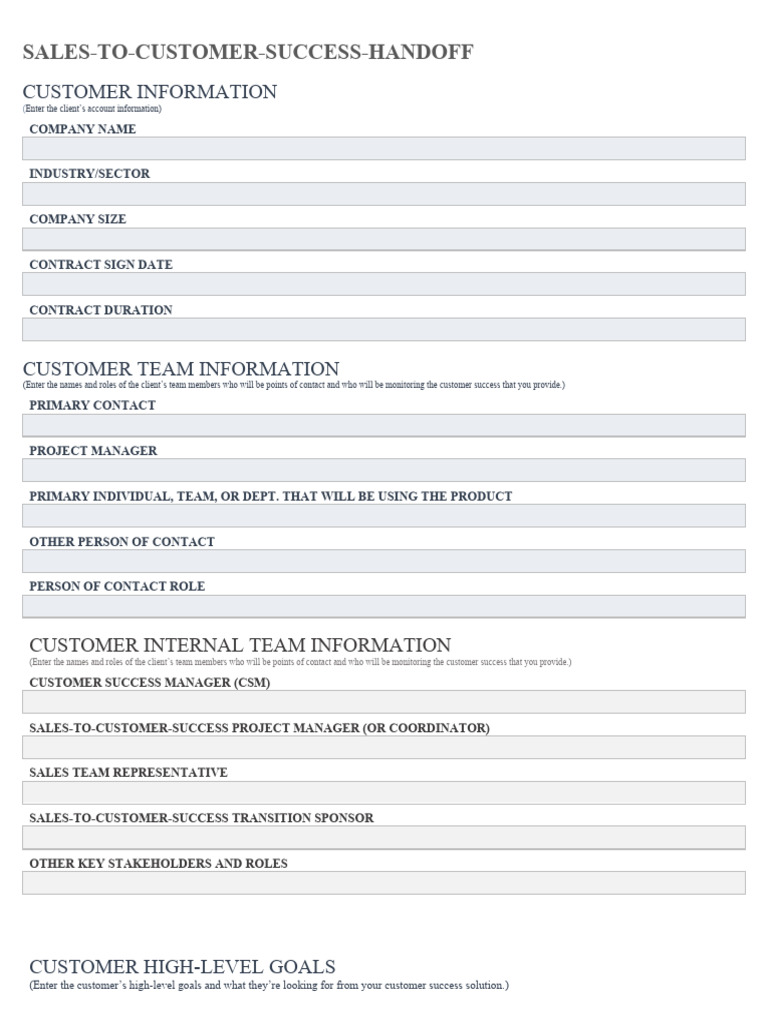 Sales To Customer Success Handoff Template
