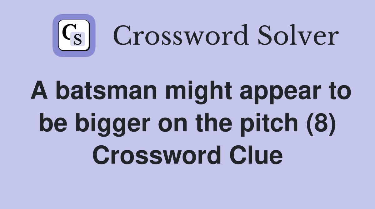 A batsman might appear to be bigger on the pitch (8) Crossword Clue