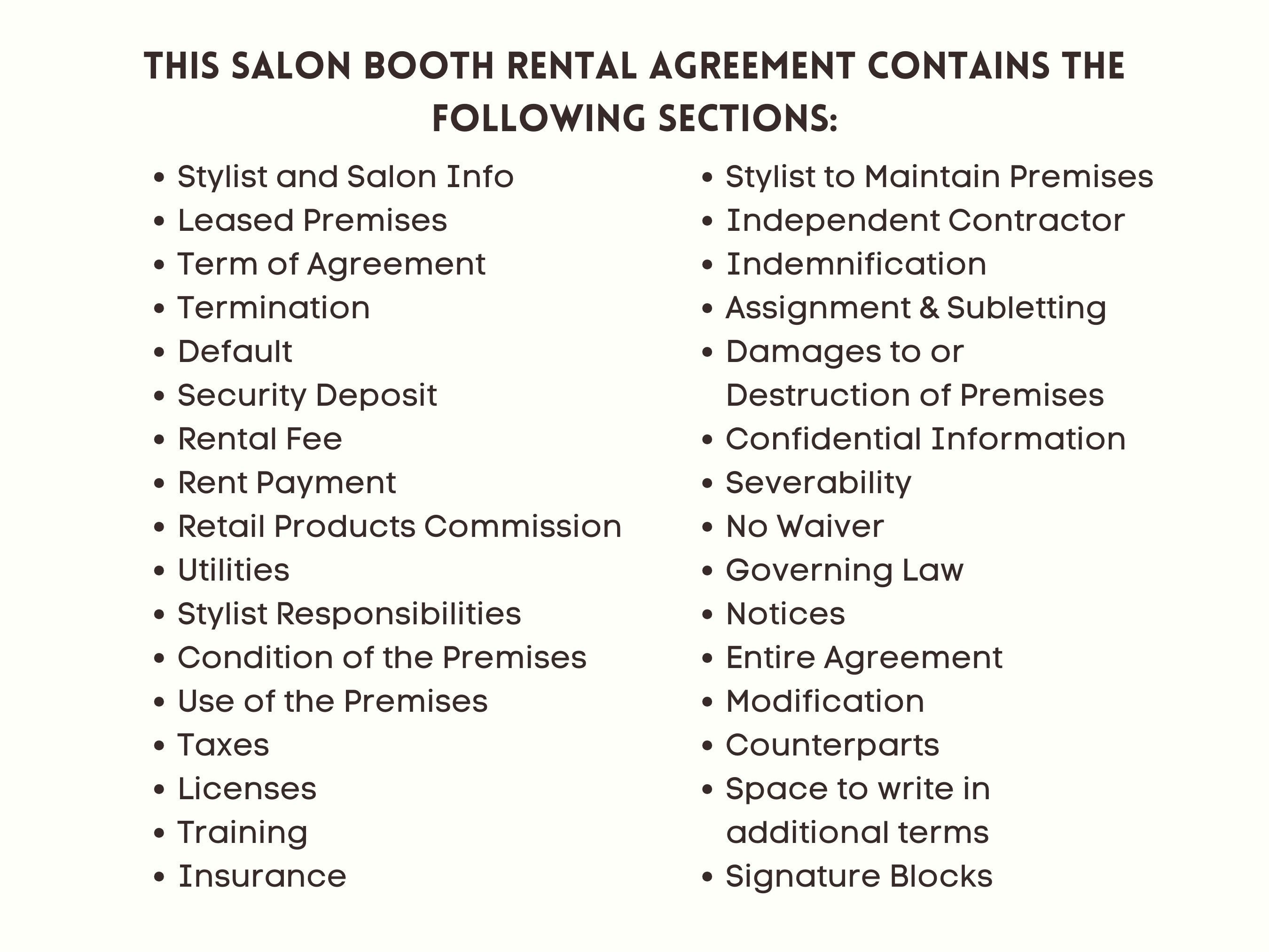 Professional salon booth rental contract editable booth rental