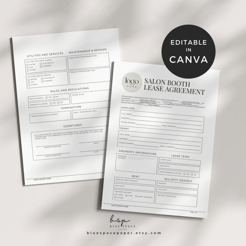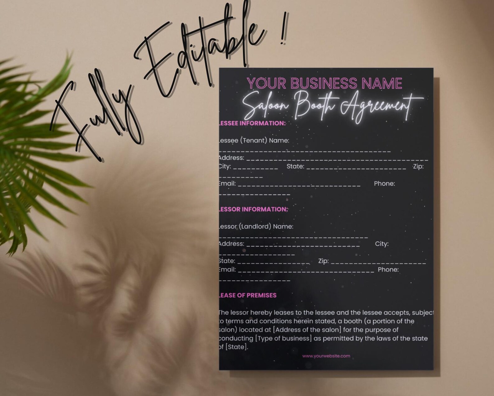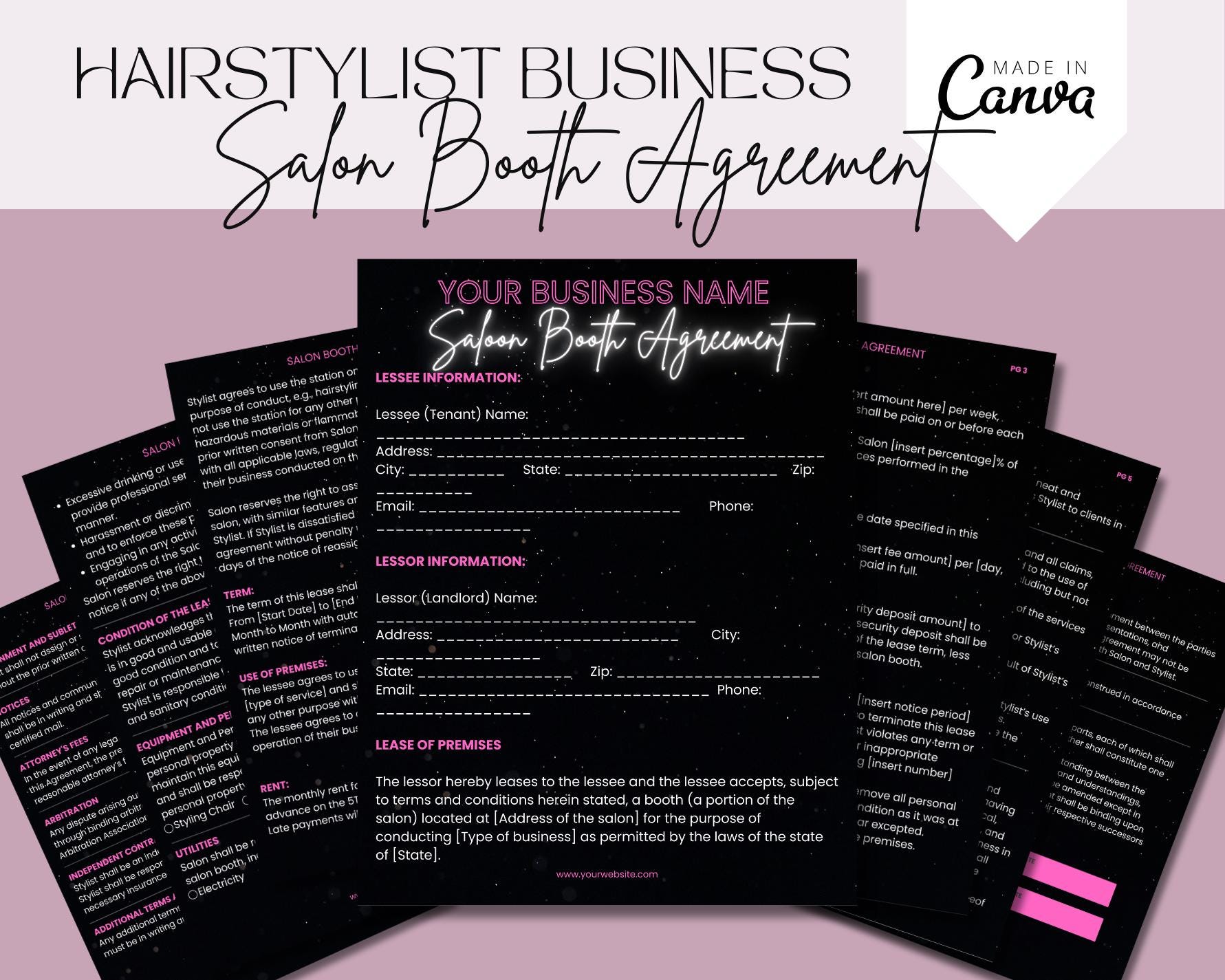 Professional Salon Booth Rental Contract Editable Booth Etsy