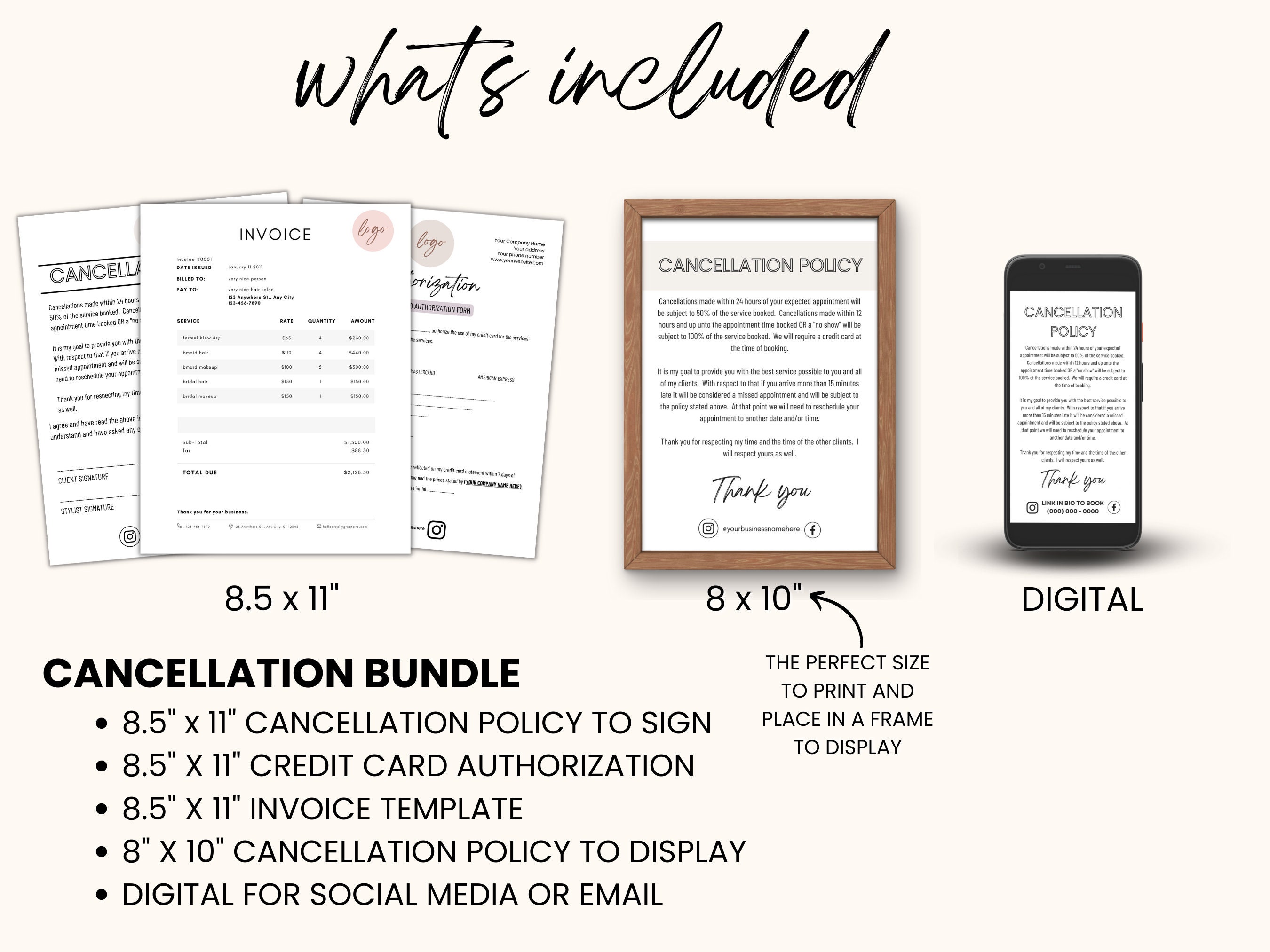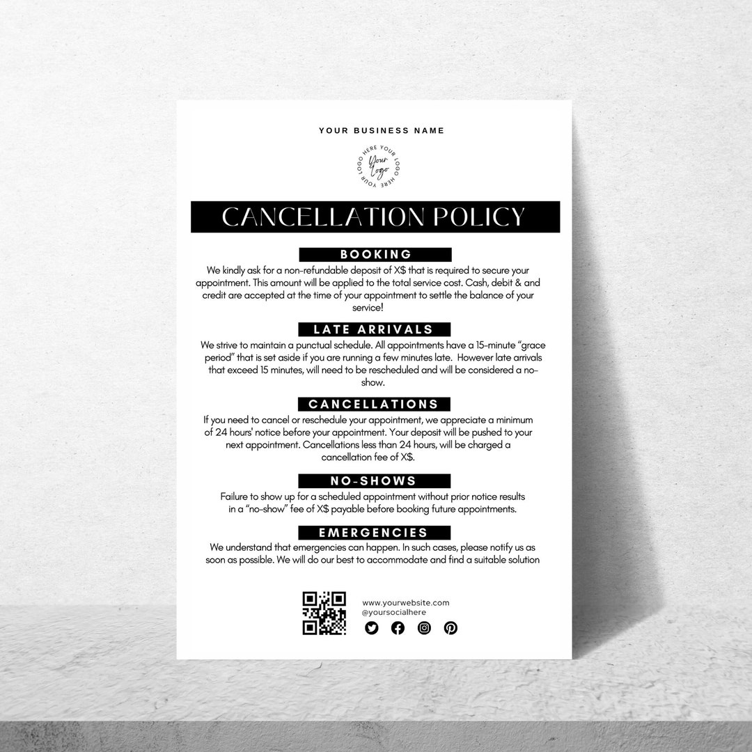 Salon Cancellation Policy Sign Template Editable Small Business Forms