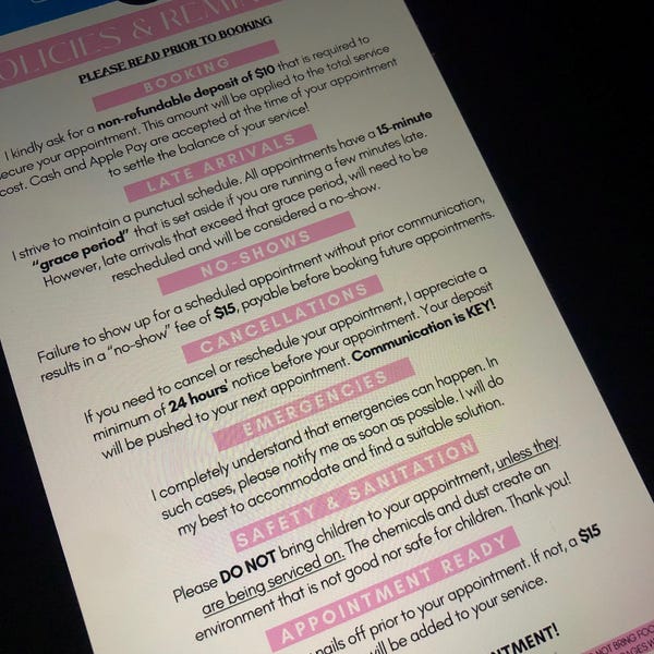 Salon Policy Template Etsy