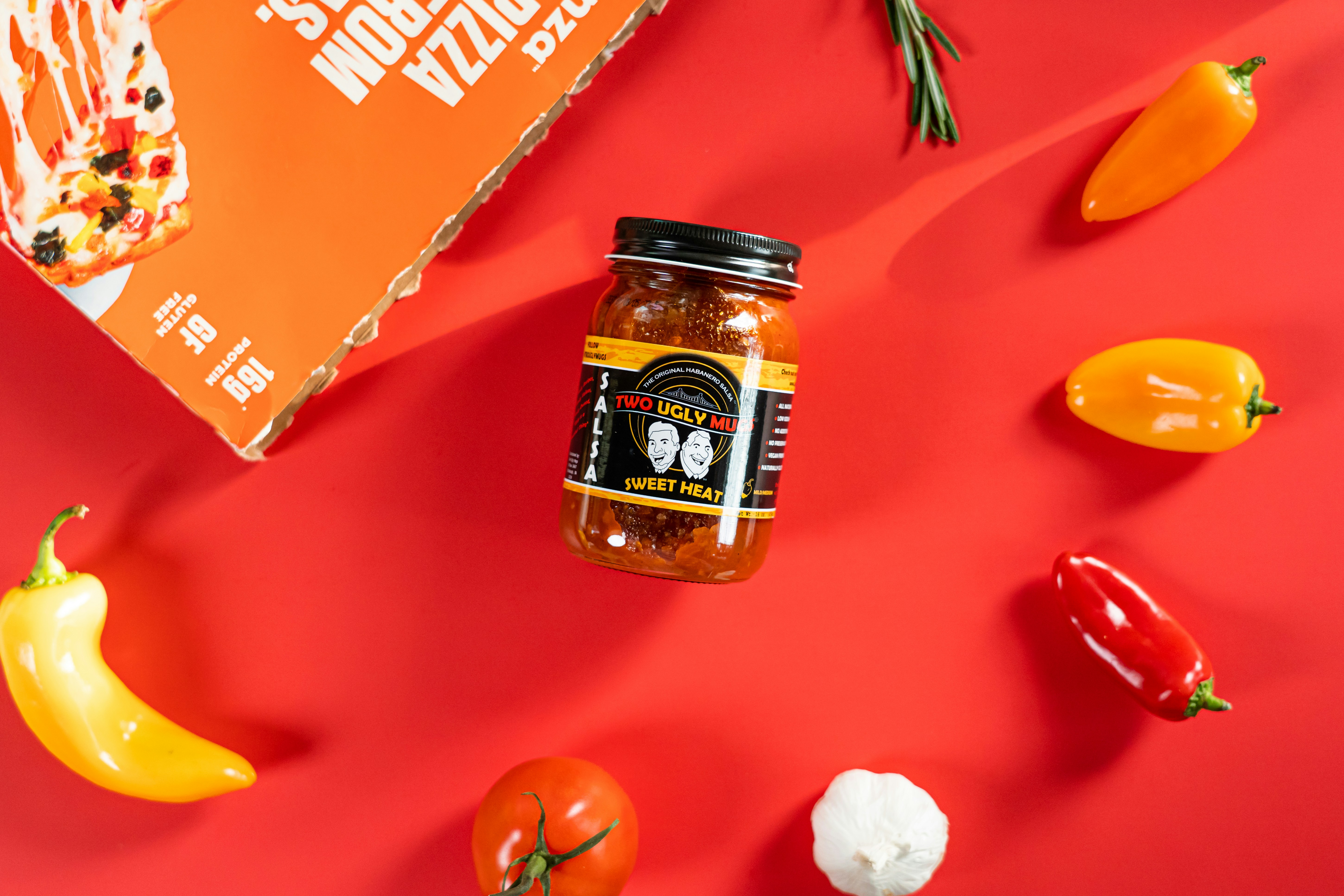 Un grupo de pimientos y un tarro de salsa foto Imagen de Pittsburgh