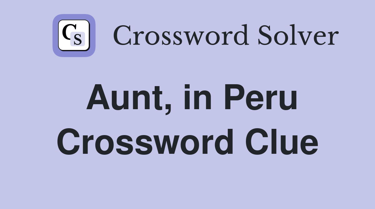 Aunt in Peru Crossword Clue Answers Crossword Solver