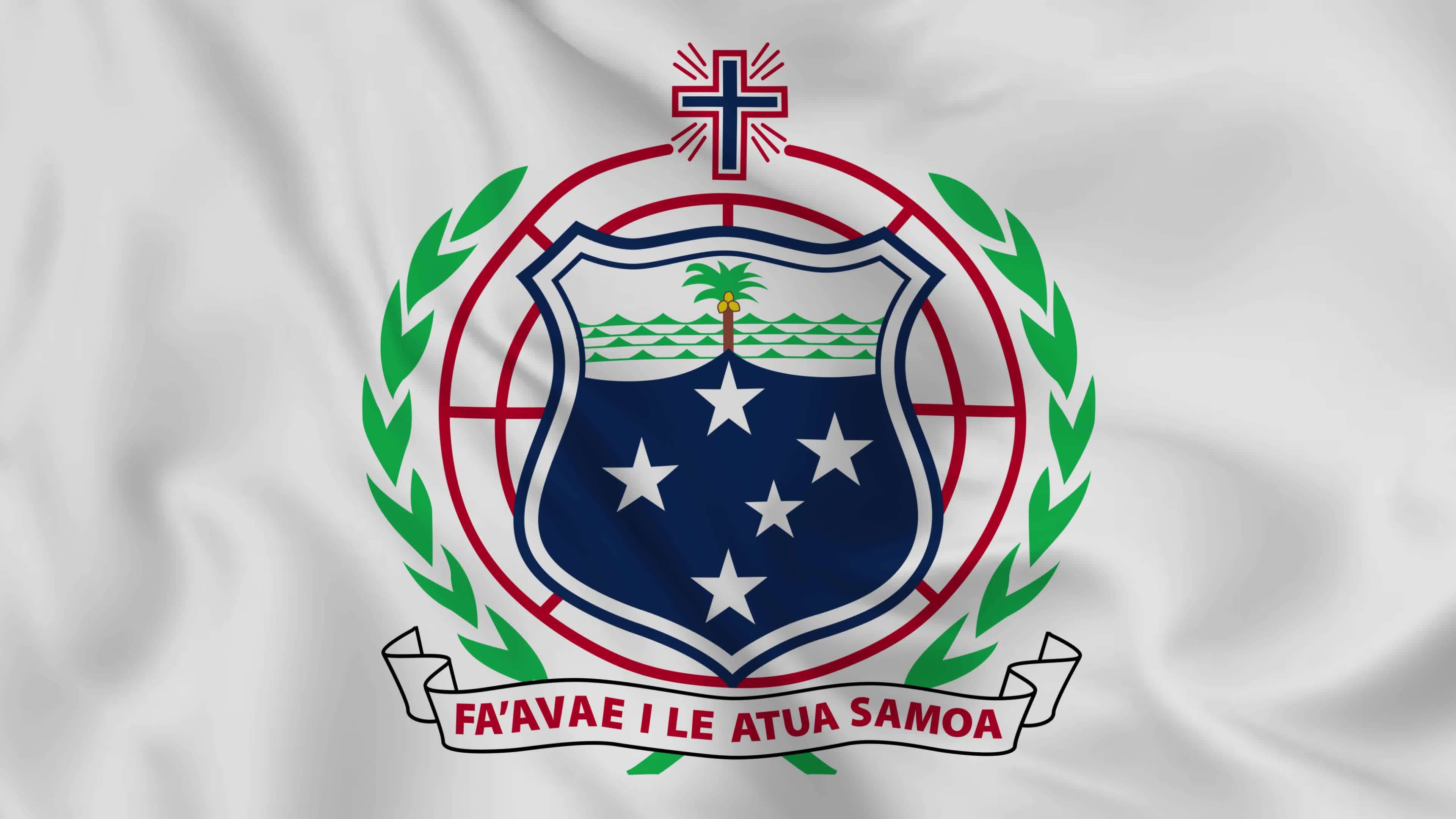 Samoa national emblem or symbol in waving flag smooth 4k video