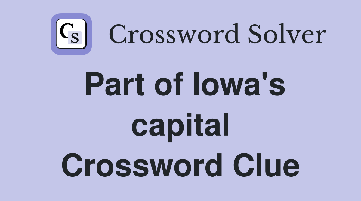 Part of Iowa #39 s capital Crossword Clue Answers Crossword Solver