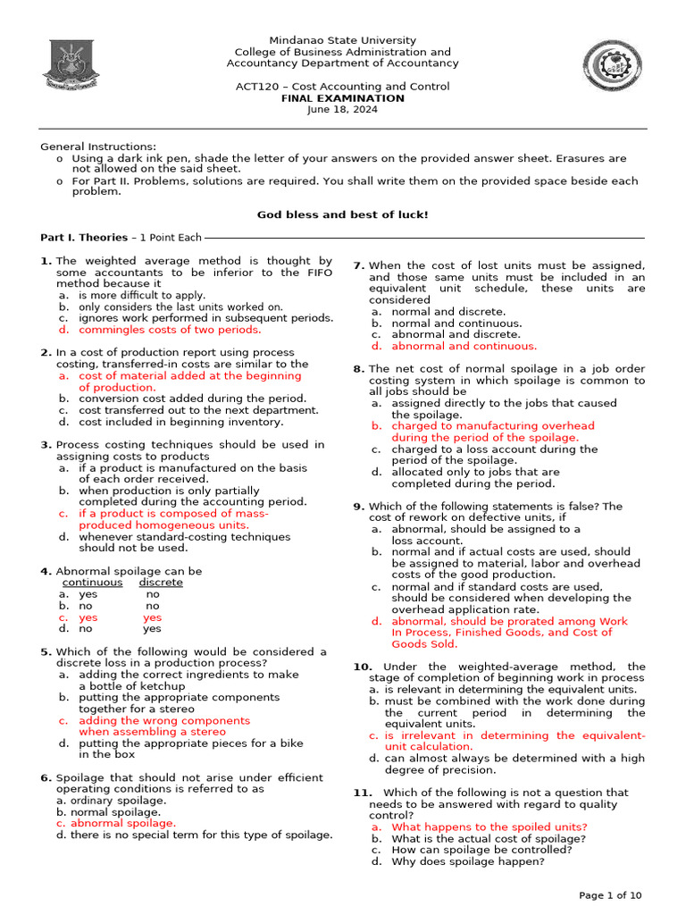 SAMPLE EXAM Set A Answer Key 1 PDF Inventory Cost Of Goods Sold