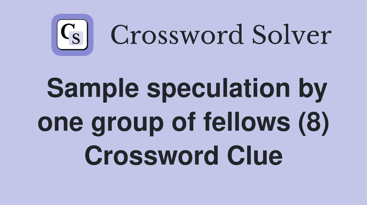 Sample speculation by one group of fellows (8) Crossword Clue Answers