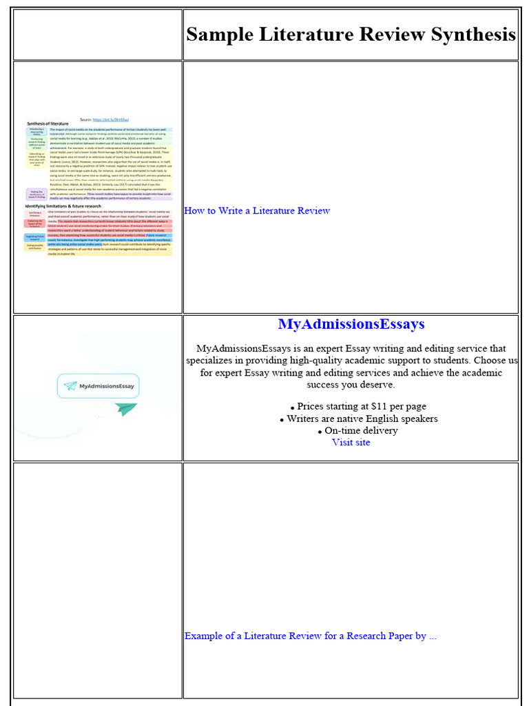 Sample Literature Review Synthesis PDF Essays Apa Style
