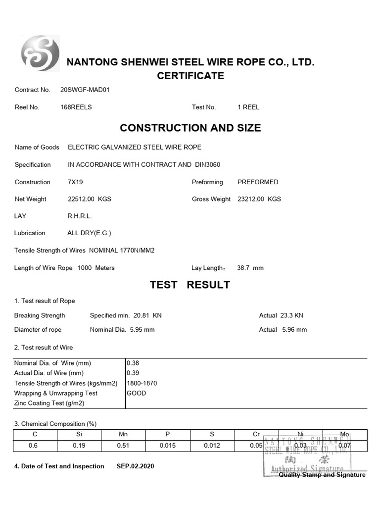 Mill CERTIFICATE PDF Rope Wire