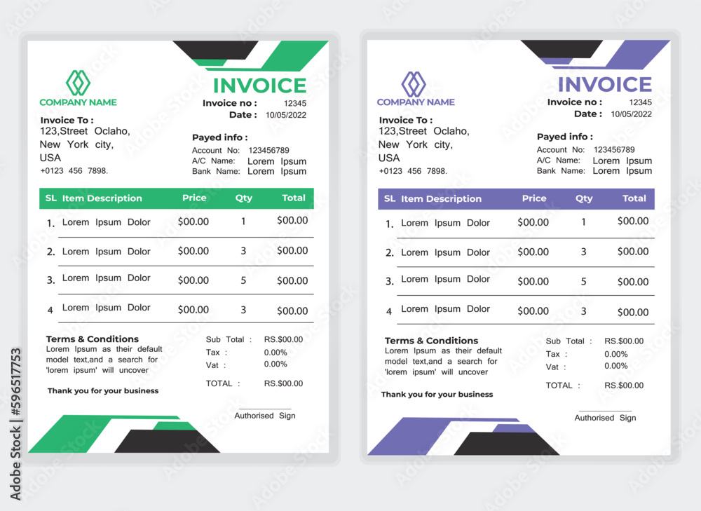 Invoice Layout Template Stock Template Adobe Stock