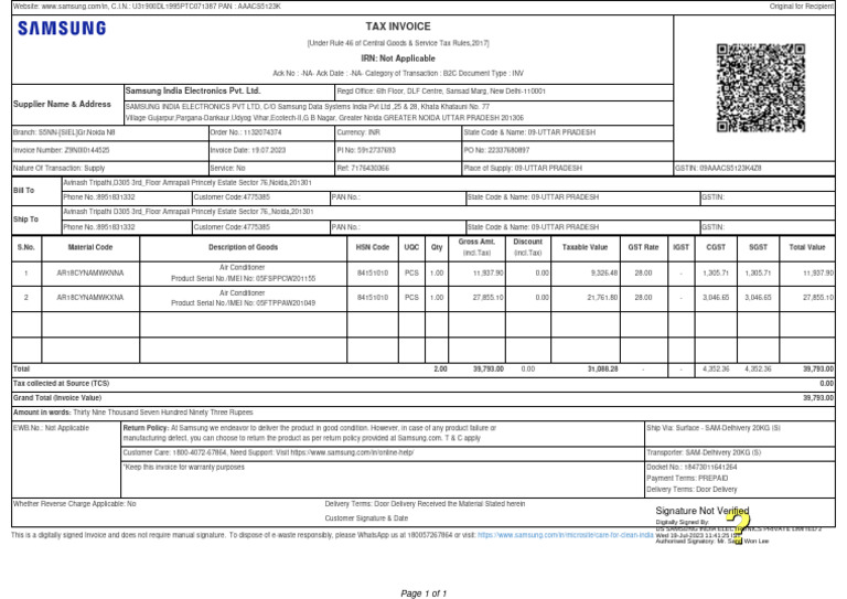 Samsung Invoice PDF