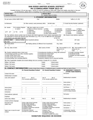 Fillable Online sandi 2013 14 Enrollment Form San Diego City Schools