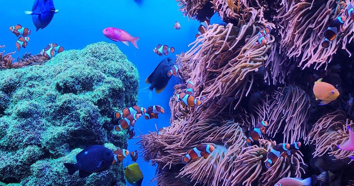 Colorful sea lion sculptures in front of the Aquarium of the Bay at