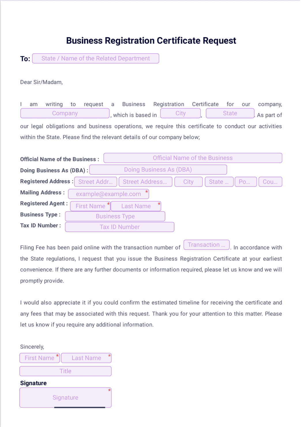 Business Registration Certificate PDF Templates Jotform