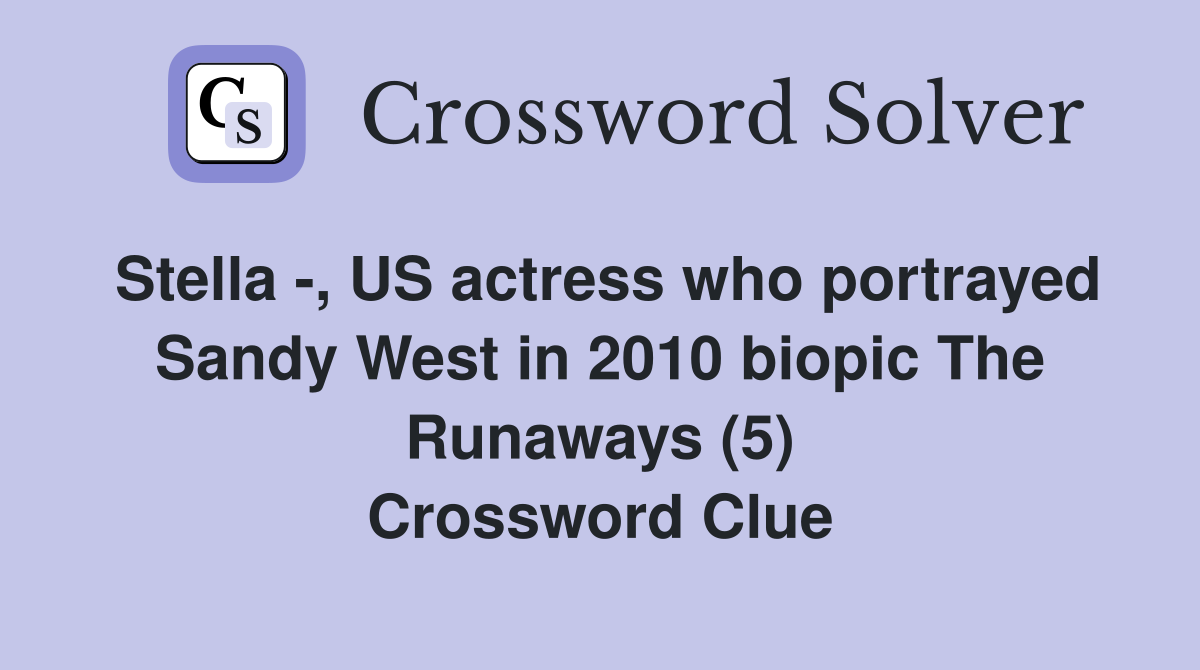 Stella US actress who portrayed Sandy West in 2010 biopic The