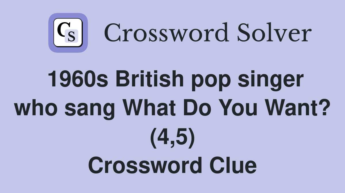 1960s British pop singer who sang What Do You Want? (4 5) Crossword