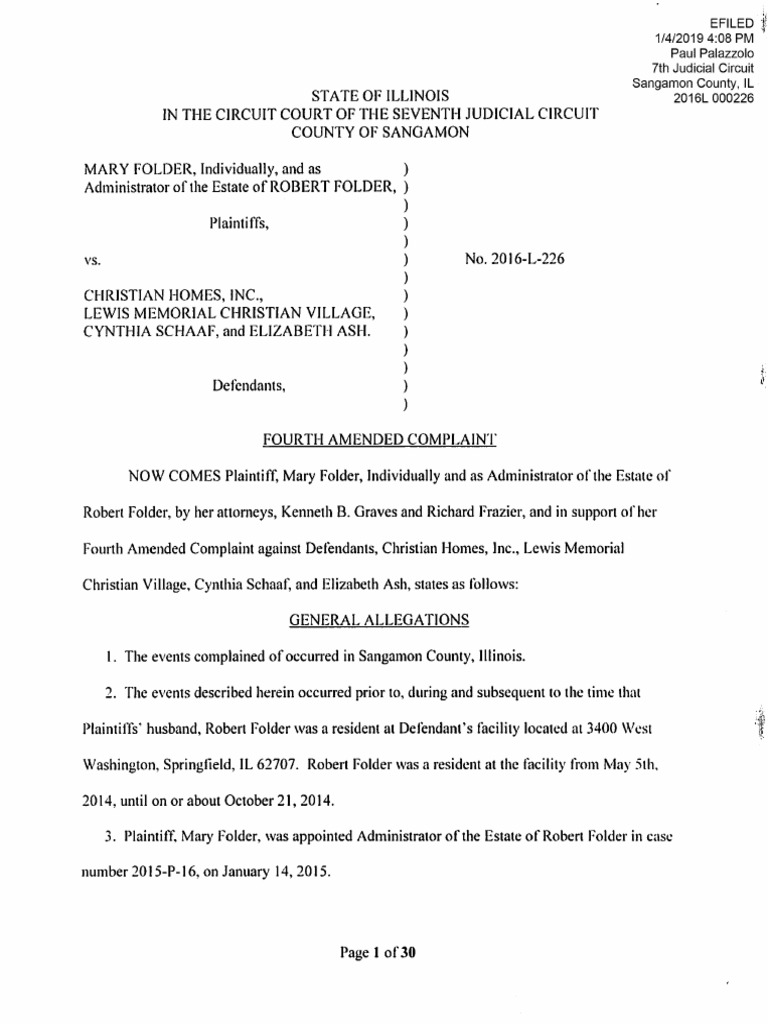 Wrongful death complaint on behalf of family of Robert Folder