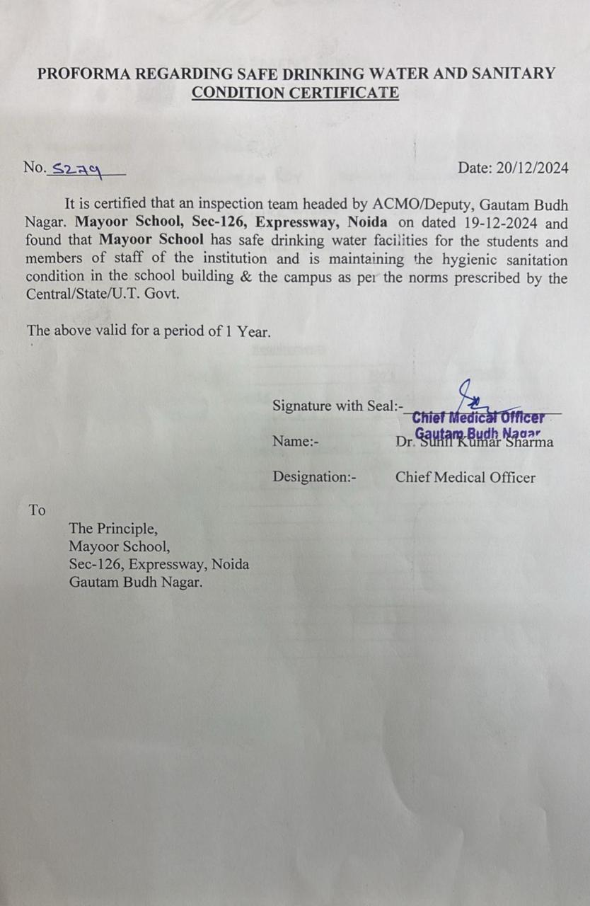Sanitation Certificate : Rama Devi Internation School Gr Noida Ext