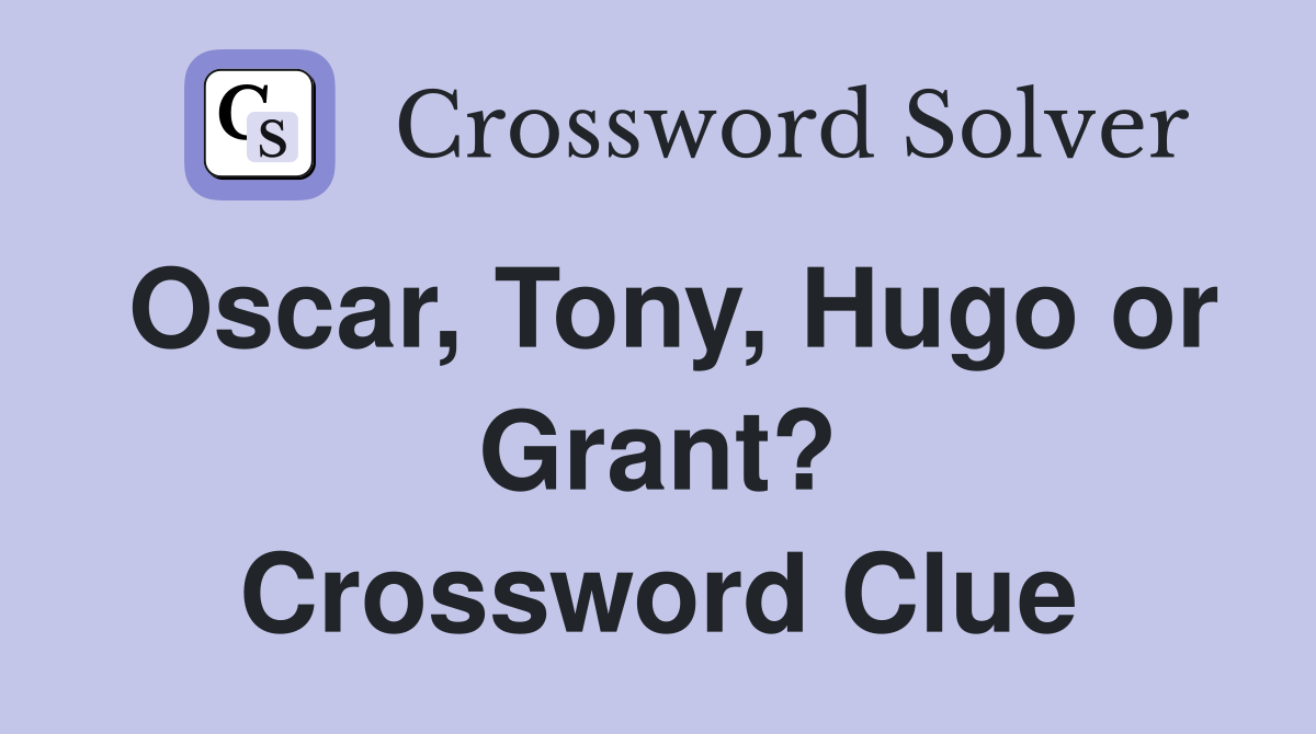 Oscar Tony Hugo or Grant? Crossword Clue Answers Crossword Solver