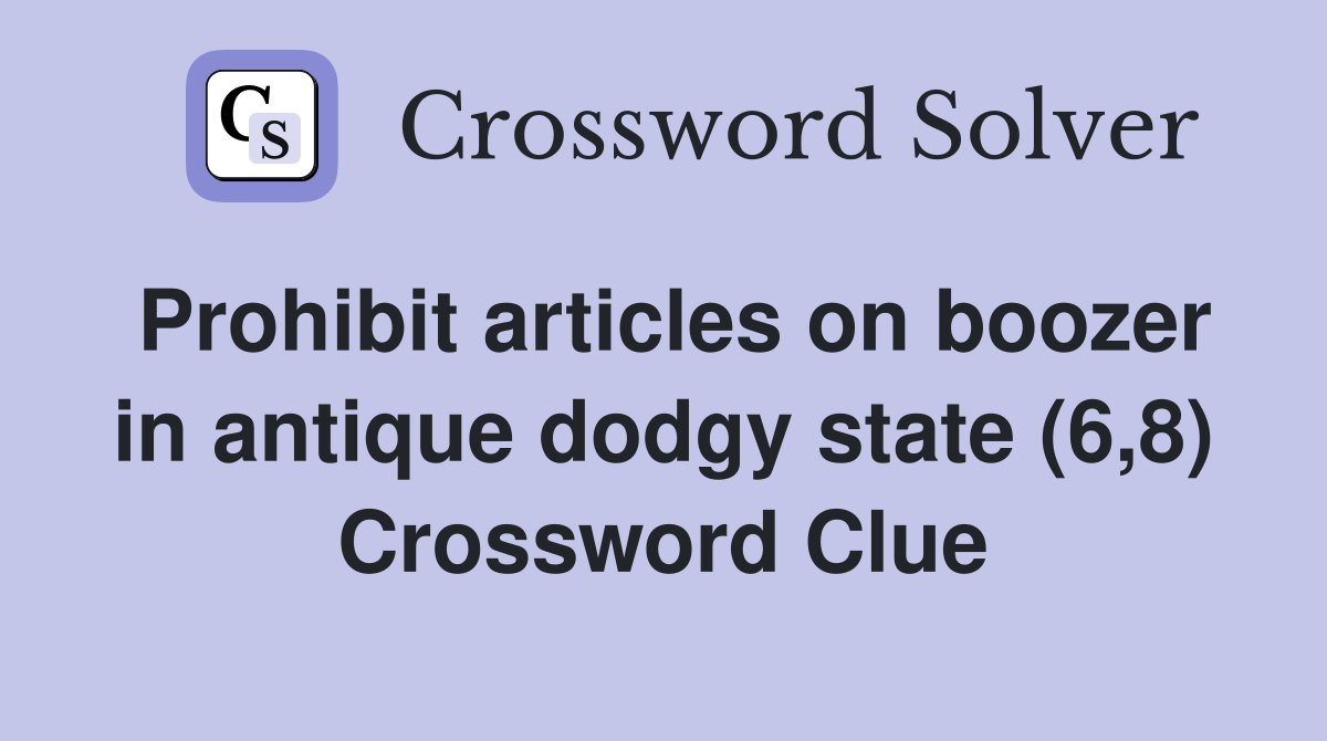 Prohibit articles on boozer in antique dodgy state (6 8) Crossword