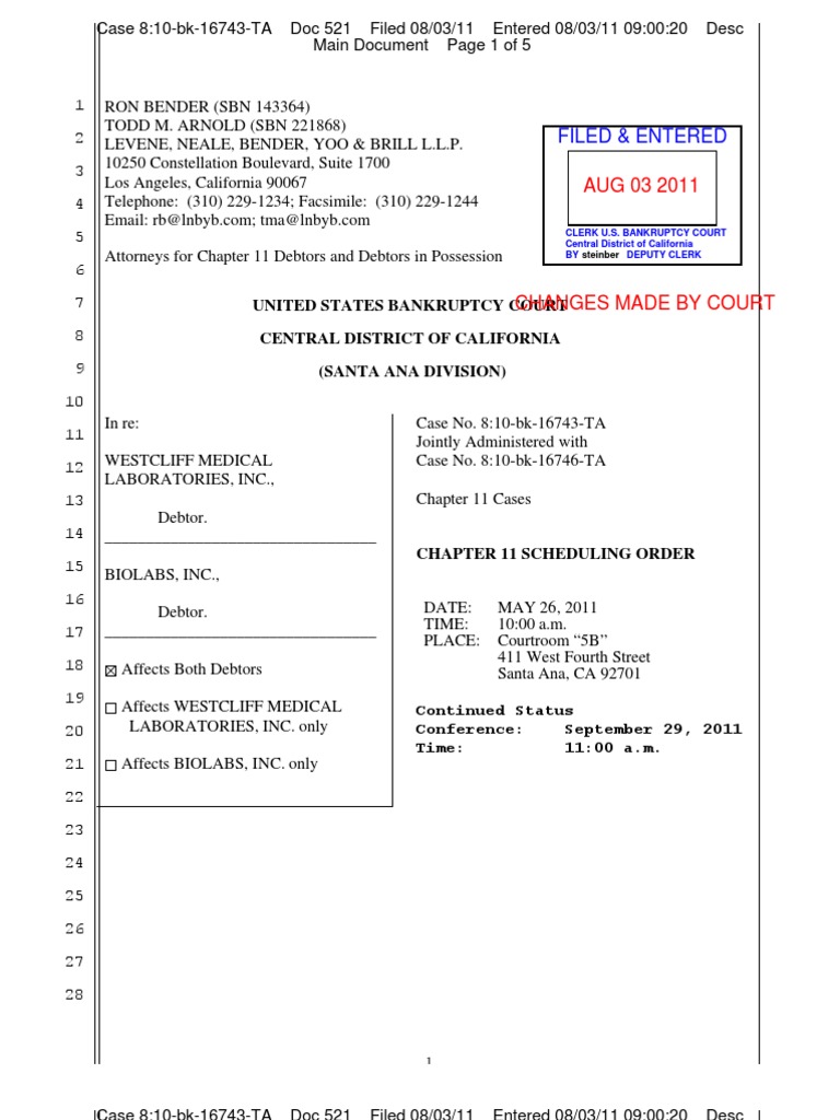 Filed Entered: United States Bankruptcy Court Central District of