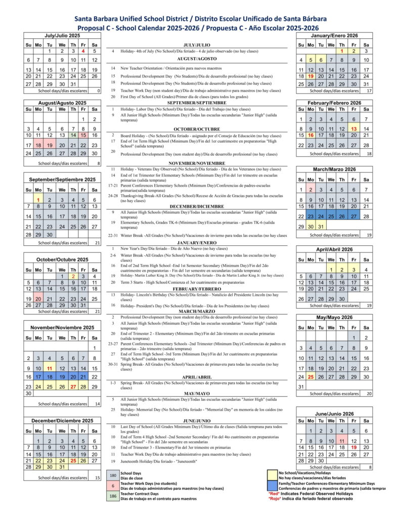 Santa Barbara Unified Sbunified Calendar 25 26 PDF revised EduCounty