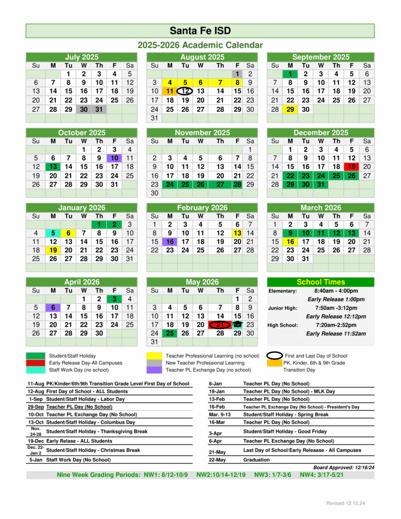 Santa Fe ISD School Calendar 25 26 Revised pdf EduCounty