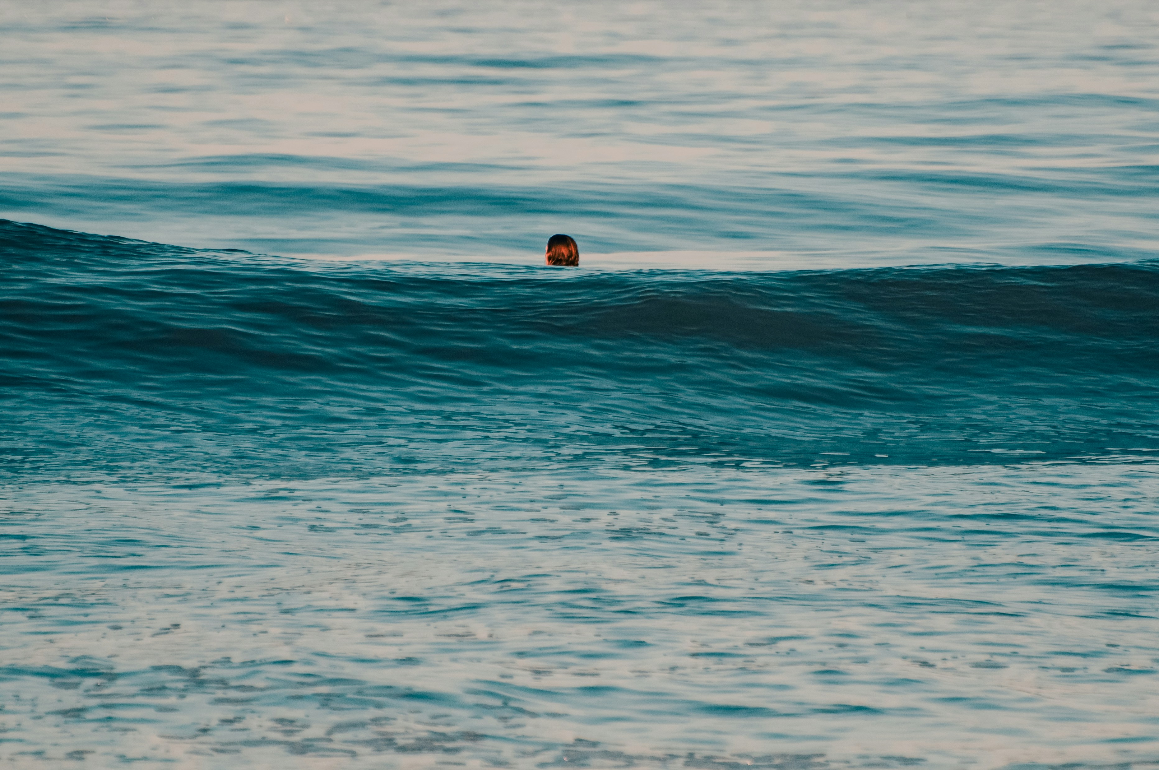 A person swimming in the ocean on a surfboard photo Free Sunrise