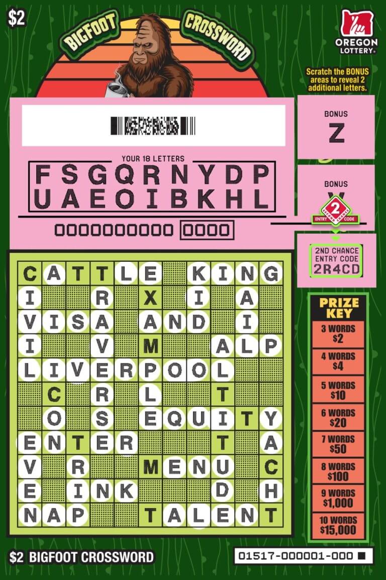 Bigfoot Crossword Lottery Scratch Tickets Oregon Lottery