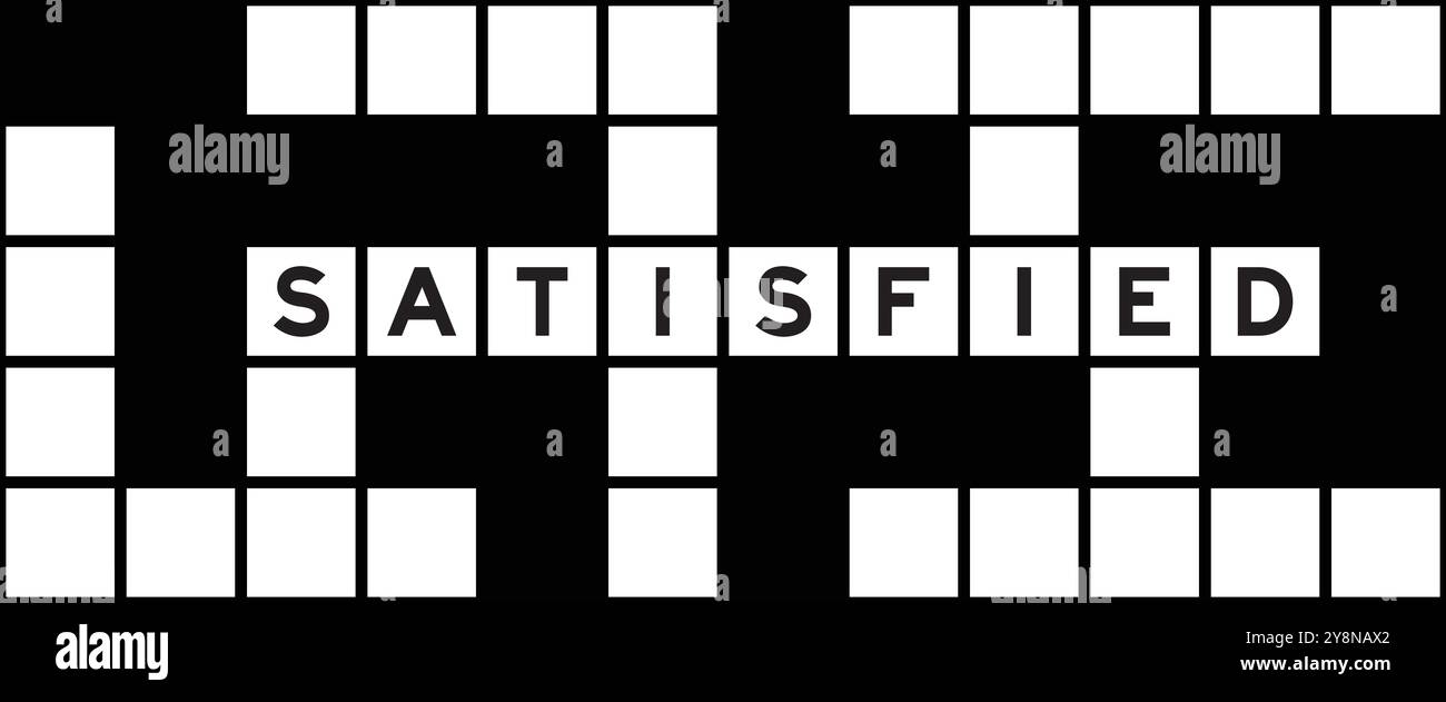 Alphabet letter in word satisfied on crossword puzzle background Stock