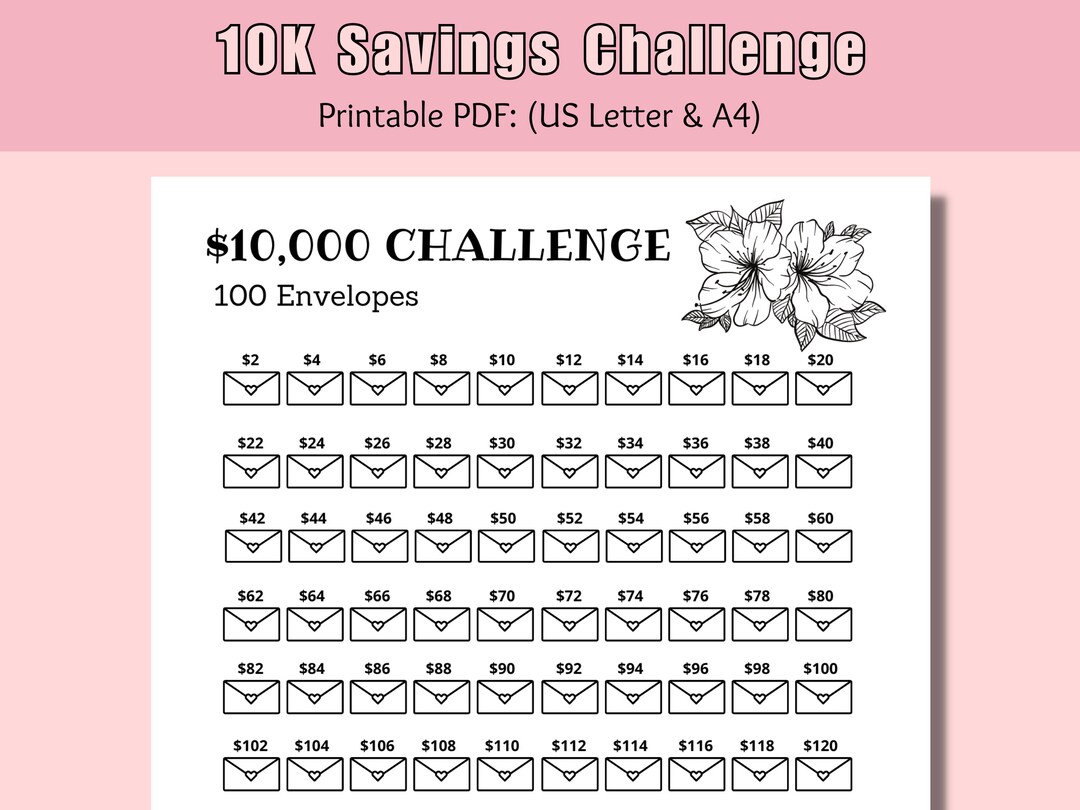 10k 100 Envelope Challenge Printable Money Saving Challenge 100 Days