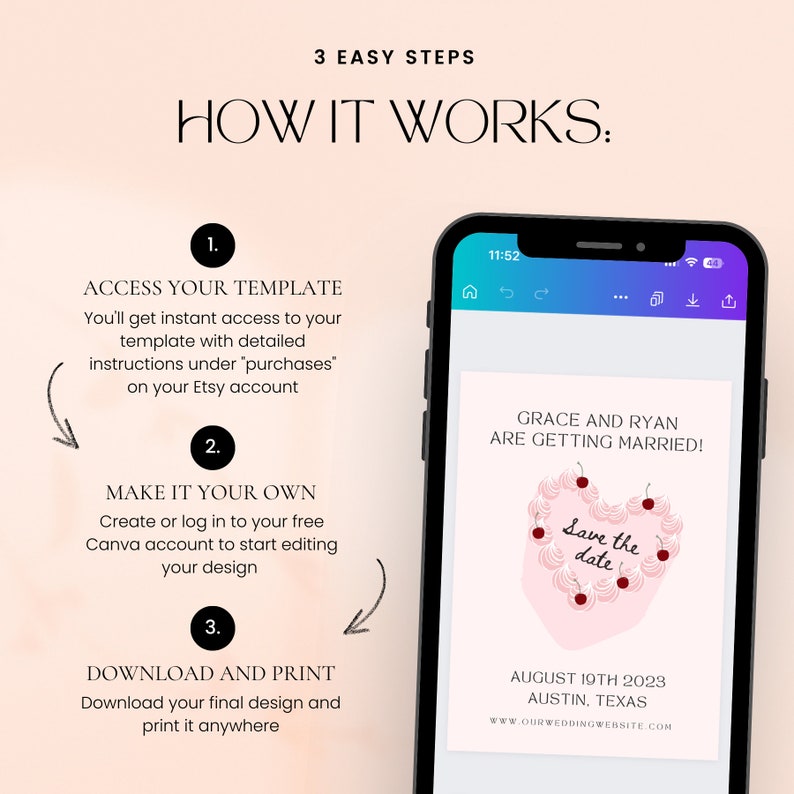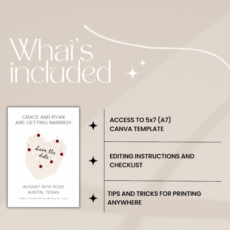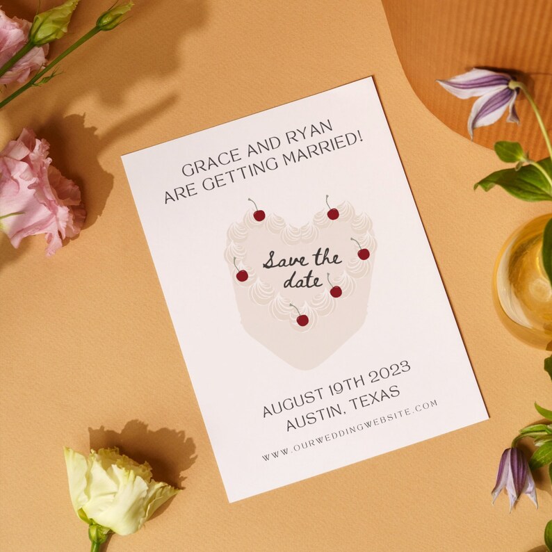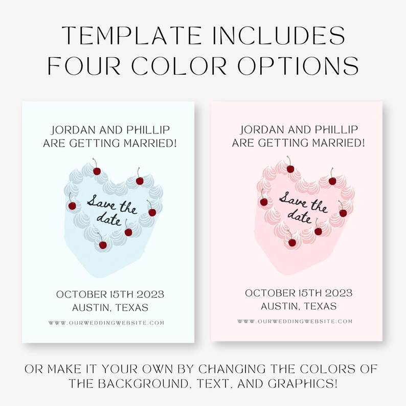 Retro Save the Date Canva Template Vintage Heart Wedding Cake Unique
