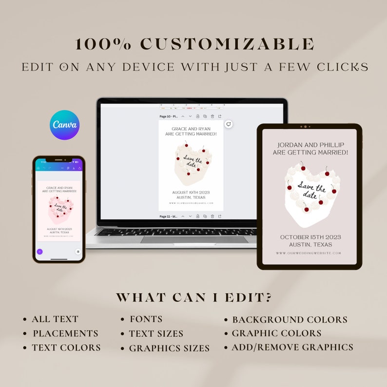 Editable Save the Date Canva Template Printable Instant Download Etsy