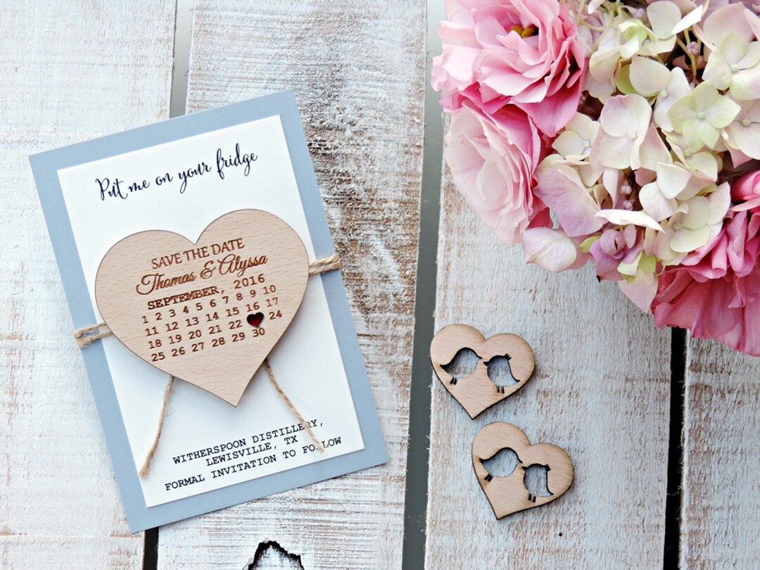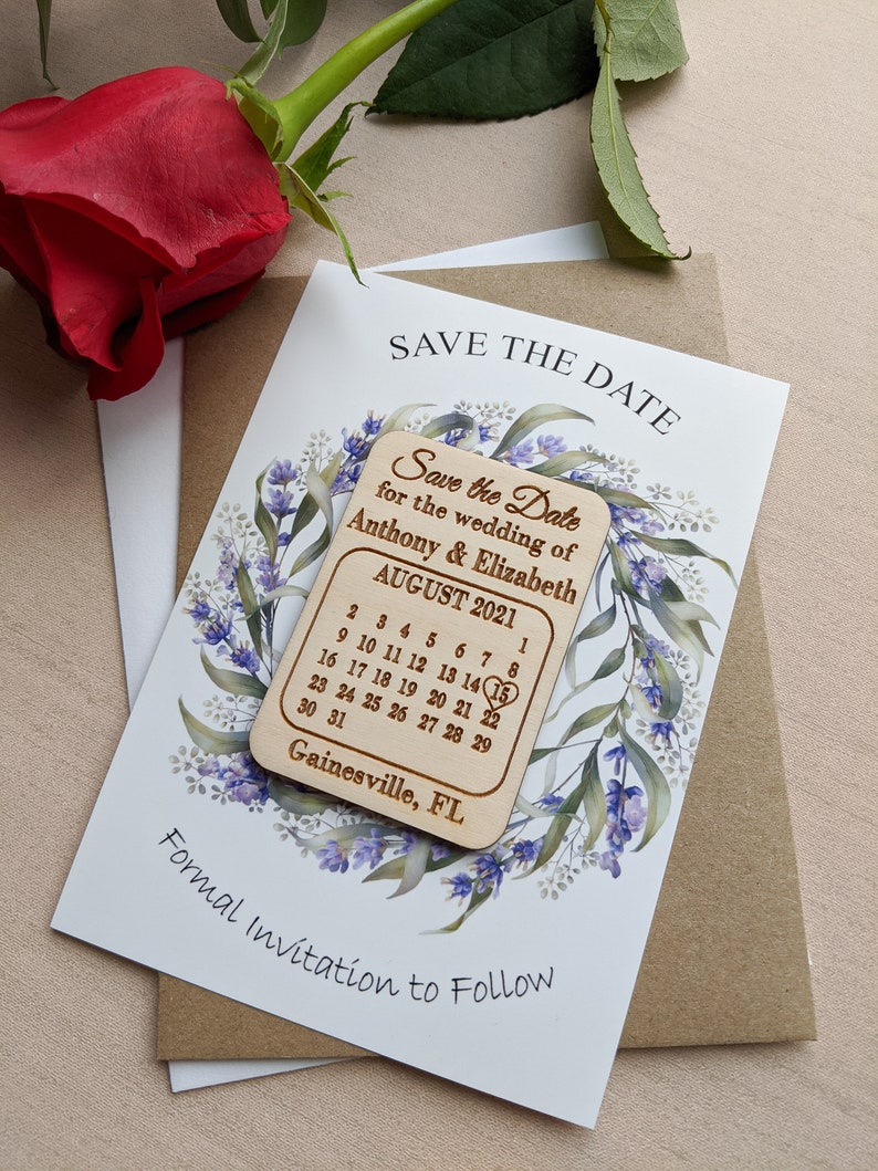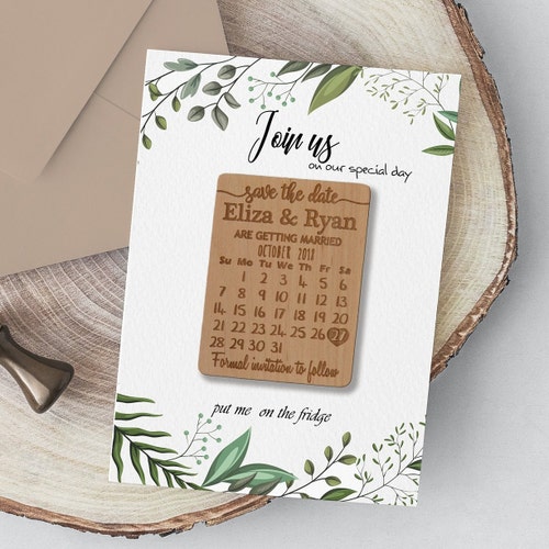 Save the Date Magnet Calendar With Card and Envelope Wooden Etsy