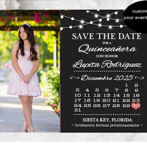 Quinceanera Save the Dates Sweet 15 16 Photo Magnets Cards Rustic