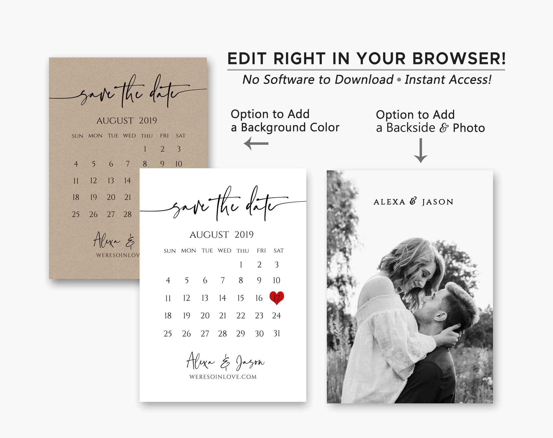 Save the Date Calendar Save the Date Template With Photo Etsy